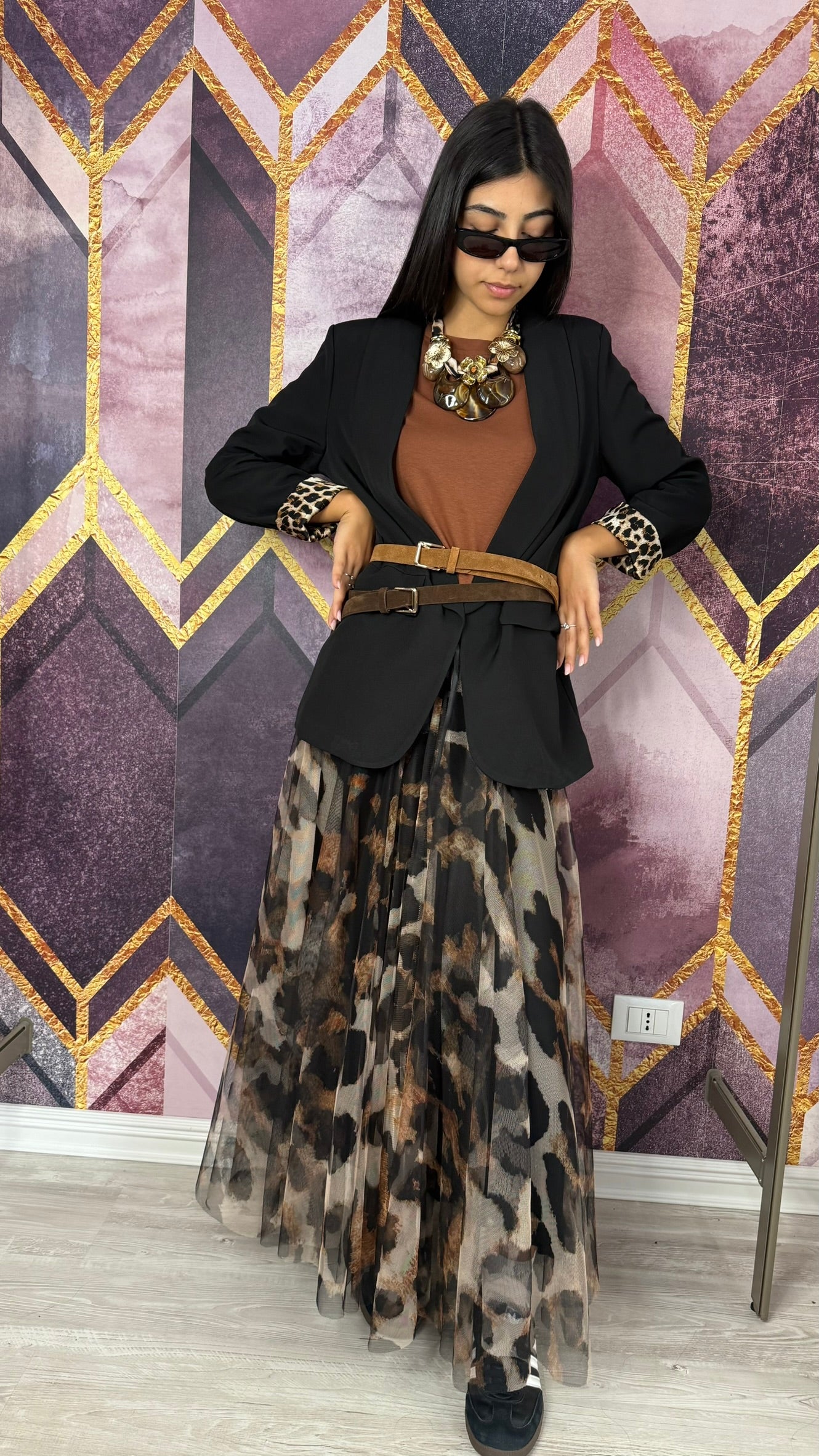BLAZER DAL TAGLIO SFIANCATO CON RISVOLTO E FODERA MACULATA.