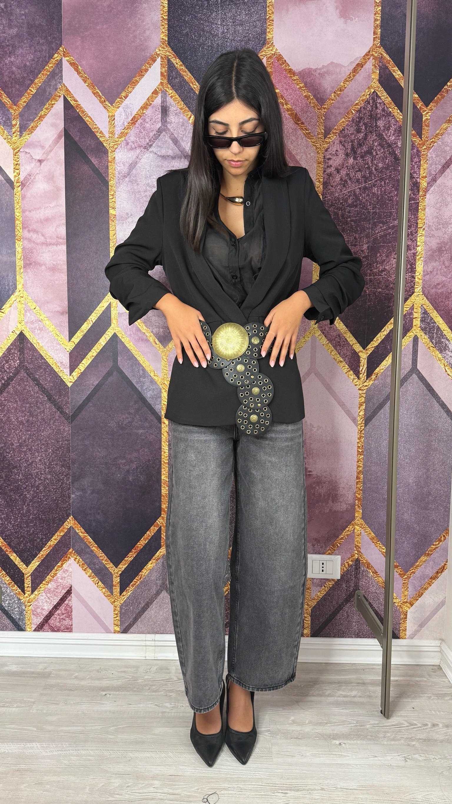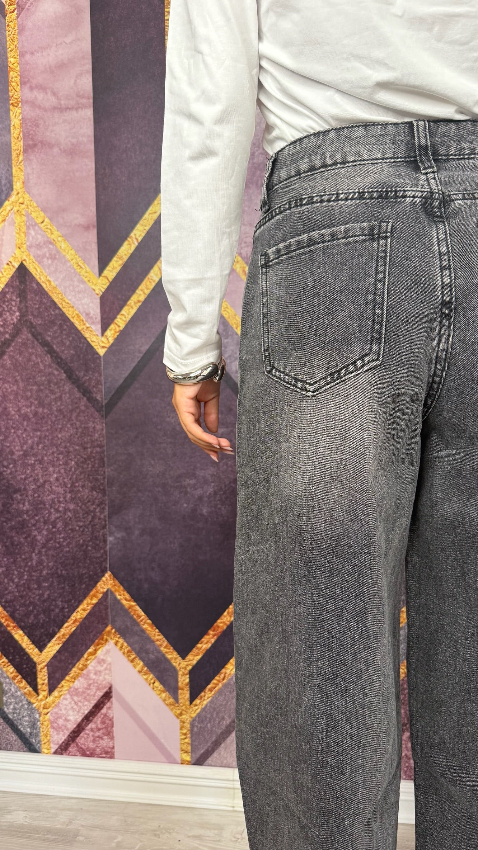 DENIM DAL TAGLIO BALLOON E DAL BAGNO GRIGIO.