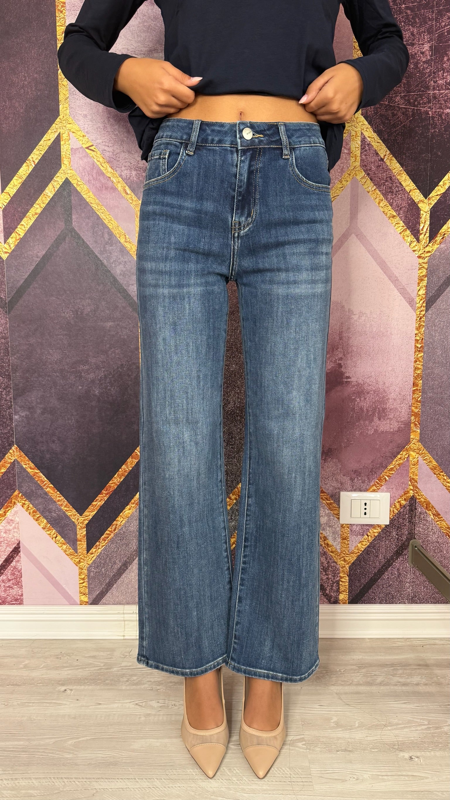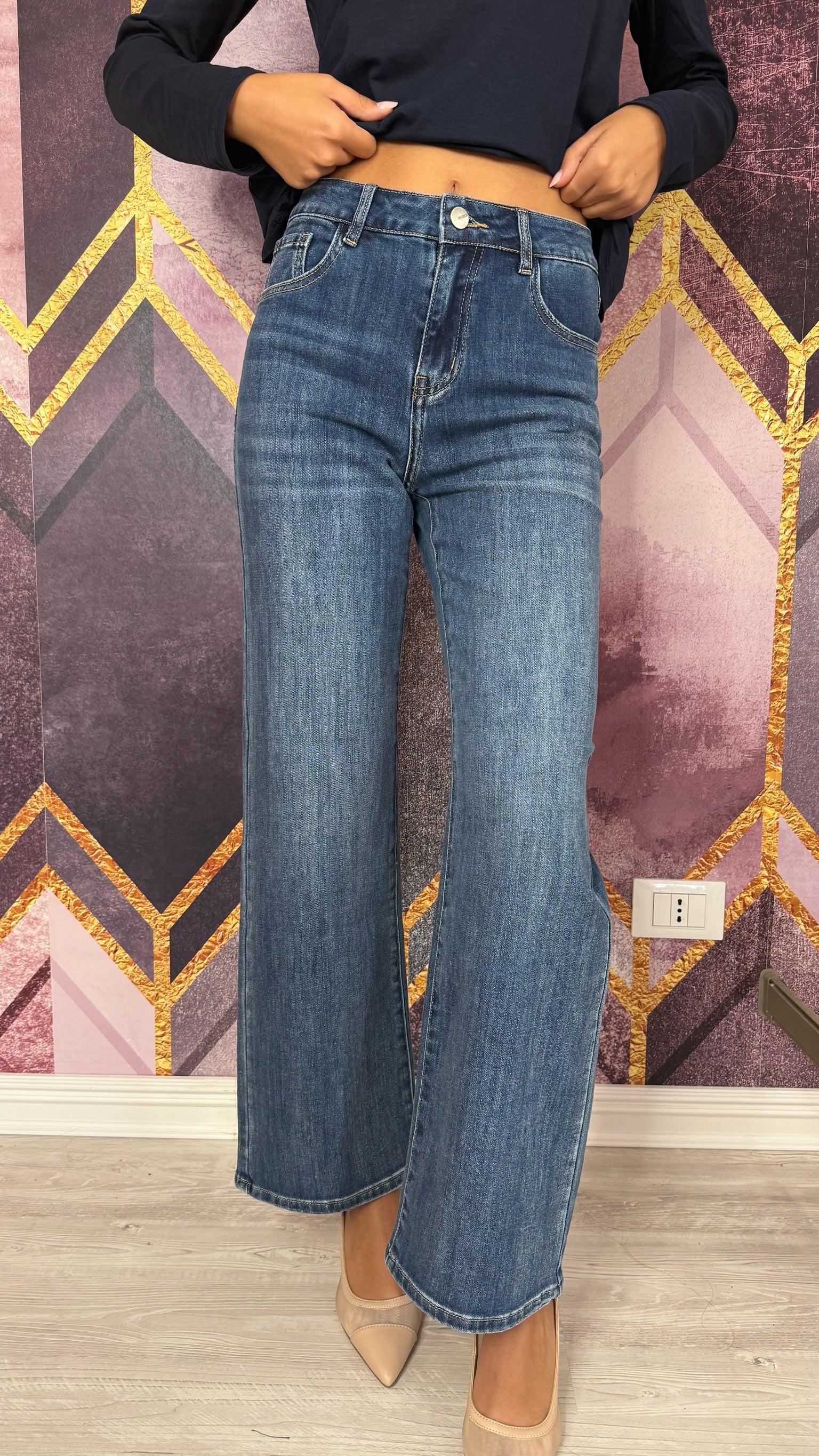 DENIM DAL TAGLIO DRITTO DAL LAVAGGIO BLU.