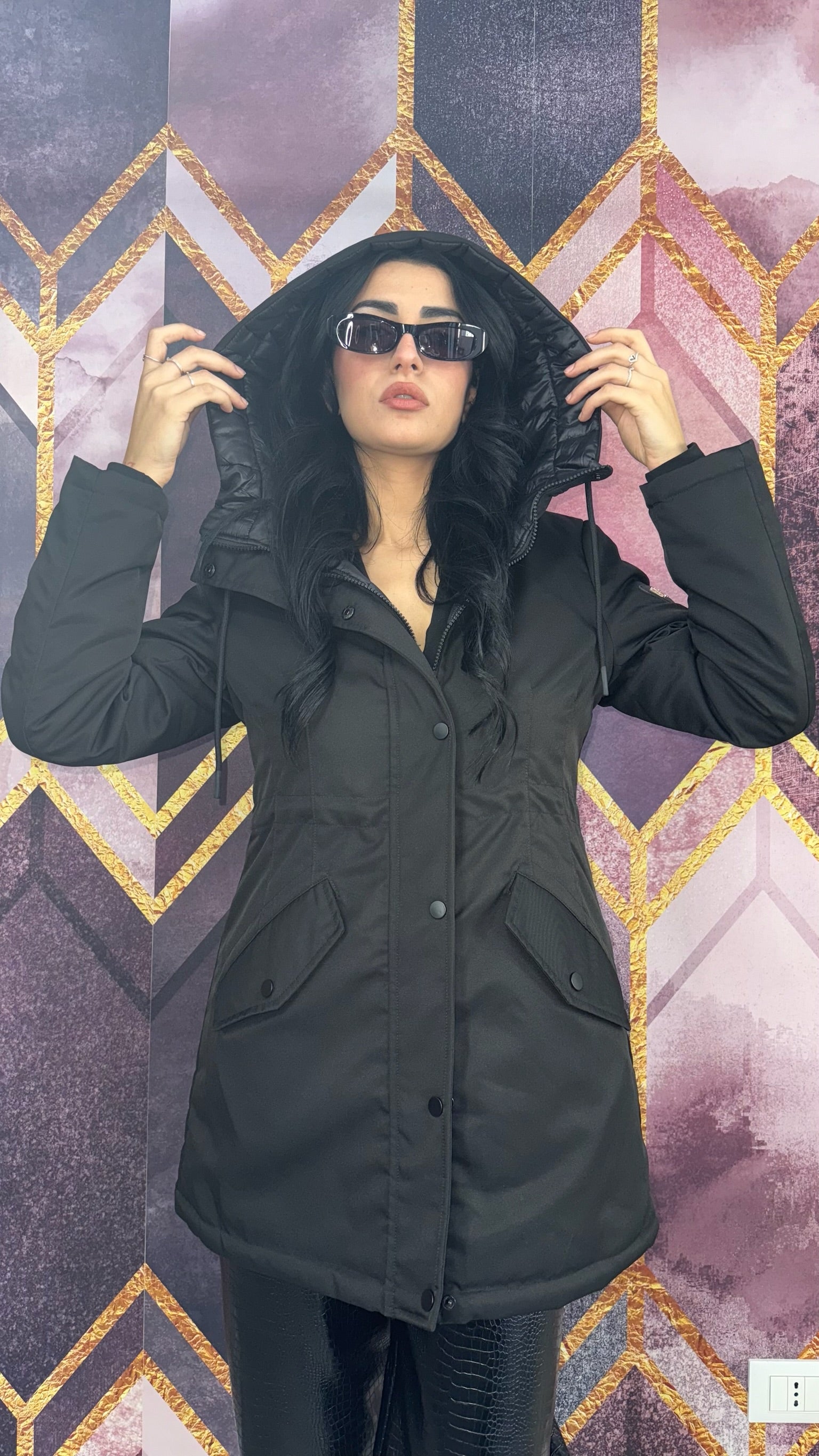 GIUBBINO DAL TAGLIO LUNGO REVERSIBIE, PRESENTA UN ELASTICO IN VITA REGOLABILE